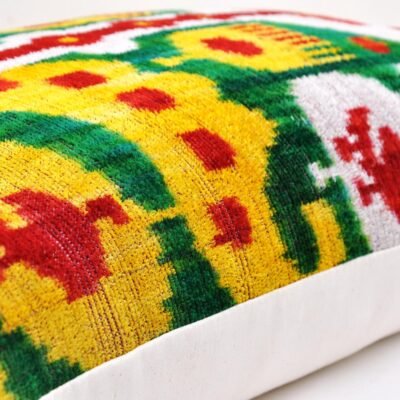Designer velvet fabric used for this best affordable velvet pillow case is the most antediluvian traditional woven. Velvet is a choice not only for clothing but also for furnishings. Velvet upholstery, velvet decorative throw pillows are the greatest authentic decor for you cozy home. Silk velvet ikat fabric is also famous with the name baghmal in Tadjik and Uzbek and as maghmal in Persian. First a manufacturer in the case of the silk velvet ikat fabric dyes warps many times the length of the finished fabric formed the raised velvet pile. Then he arranges the ikat dyed warp threads on the loom between plain orange or pink dyed foundation warps. Woves the cloth in plain velvet technique. Upon completion, the raised pile is not clipped. A razor is through the wire groove leaving a perfectly even, clearly ikatted, pattern on the pile.