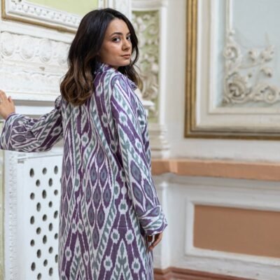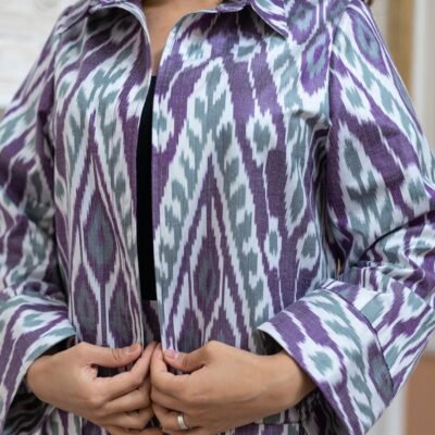 Amethyst purple ikat fabric kaftans, which are both practical and stylish, have no end to the delights they may provide. The kaftan jackets are versatile enough to be worn everywhere, from a party to a date to lounging around the house. The stunning assortment not only allows for unrestricted movement, but also highlights the feminine curves of a woman’s body.