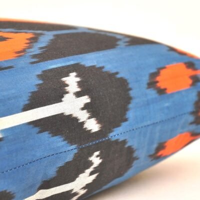 Indeed, this pillow is a handicraft texture of genuine IKAT. A distinctive feature of ikat textiles is the use of natural intense colors. While this can be attributed to the closeness of particular dye sources and the love of striking effects, it also has a religious connotation, with the sense of combined imagination of heaven held in beauty. On the other hand, the colour combination is the fruit of the influence of the aesthetics of foreign cultures. Dyeing, like ikat weaving and embroidery, is an exclusive craft in the Asian population.