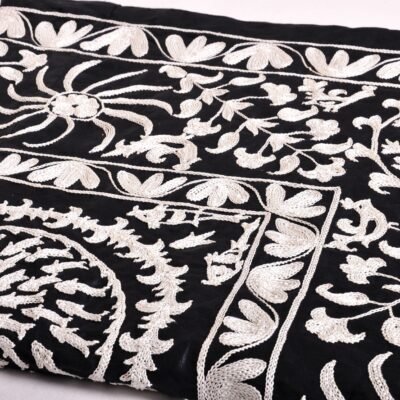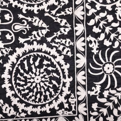 The designs of Suzani are in black and white colors of embroidery thread. So, this is a hard work black and white suzanne couching Embroidery. The embroidery fabric was often dyed before use with a tea bath or a dye made of onion skins to darken the fabric before embroidery. The embroidery designs and patterns used in Suzani are thought to have derived from pre-Islamic motifs used in central Asia and were passed along the silk road. Alesouk suzanis are genuine folk art, stitched by hand in the oriental manner. Vastly rich in color and original in ornamentation, it is a marvelous decoration for any house. The suzani is an enduring symbol of cultural connections forged along the silk routes. We offer the finest and most complete selection of contemporary and traditional suzani embroideries alongside a wide variaty of Ikat fabrics. Especially, traditional and fashionable different clothes.