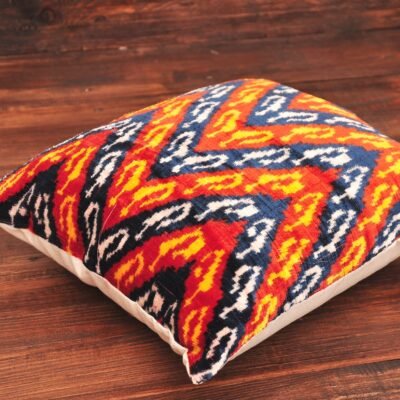 Colourful Zigzag Velvet Cushion one of the most outstanding cushions of our collection. Create the atmosphere in your home that will please your eyes for a long time. In other words, it is obvious that the atmosphere in your home wil influence to your mood, thus crafull approach should be selected while furnishing your home décor. Above all, add a piece of Oriental world which is full of life, culture, and vivid colours. Firstly, Handmade Colourful Zigzag Velvet Cushion will amaze with its quality every visitor of your home. Demonstrate your delicate taste and extraordinary way in home designing. After that, attach racy colours of Oriental applications and peculiar items to immerge to Uzbek world.