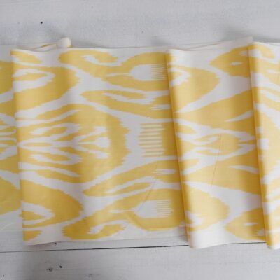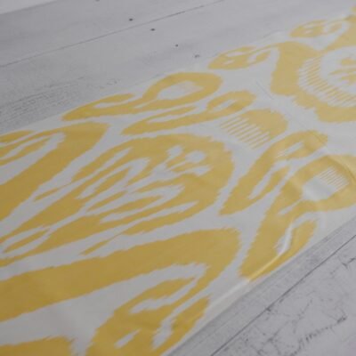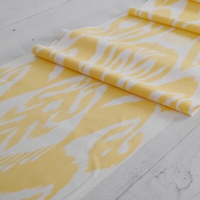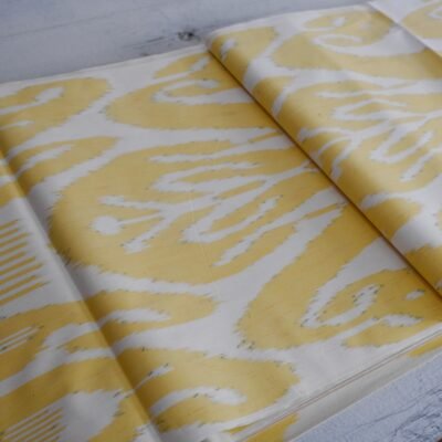 Yellow Cotton Ikat Fabric adds a wonderful piece of the Oriental world to home design. Especially, women adore it because of its exclusive patterns and utilize this fabric as a part of their apparel. Nowadays, the unique patterns of Ikat textiles give piquancy to home décor and create a cosy atmosphere. Moreover, silk and cotton are much more comfortable for the body than other materials. Adras (Ikat) fabric is able to maintain an optimal microclimate for the human body. Ikat can be used in clothing design, interior decor, as well as for the manufacture of additional accessories – scarves, shoes, bags, and hats. Machines wash with shampoo at 30 – 40 degrees. The fabric does not fade, does not crumble, does not lose colour brightness. EcoFabric works directly with Uzbek masters so we suggest you choose and buy a really high-quality assortment of Adras.