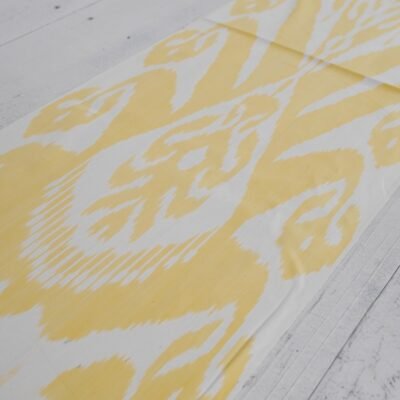 Yellow Cotton Ikat Fabric is a wonderful choice to create cosiness around you. In the Oriental world Ikat textile stays in a prominent place and it is in popular demand. Additionally, Yellow Cotton Ikat Fabric has been an integral part of national clothing, culture, and interior design. Silk cotton fabrics are handicraft textures of traditional hand-looming and hand-dyeing techniques. We weave fabrics in Uzbekistan using Anatolian and middle eastern patterns. Traditional ikat weaving utilizes no chemical dyes or power looms. That is why the impressiveness and durability of the unstressed Ikat Textile are beyond compare. This type of fabric is durable, rich in colour. Thus, it enables you to use it for a long time without loss of properties. Due to their unusual versatile properties, these fabrics keep you cool in summer and give off warmth in winter.