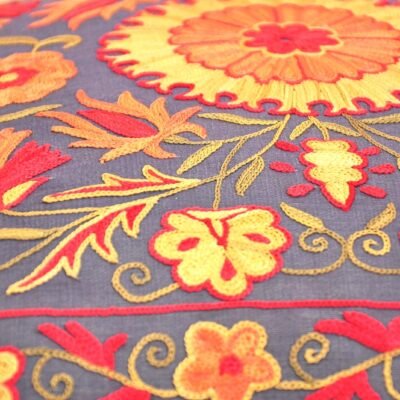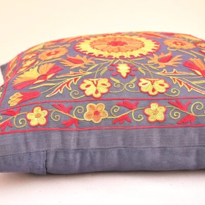 Try using unusual ornaments with this embroidered suzani accent throw pillow! This suzani decorative cushion is a great way to introduce farmhouse style quickly and effortlessly to your home. Because the tulip design on this accent is most vividly evoking springtime and blossoming. Besides, the colors match the wonderfully stylized version of the design. The texture is displaying exquisitely most adorned cross-stitch motifs. Thus, it brings a sweet nostalgia of old days. Undoubtedly, you will feel like adding a piece of ancient nomad art to your interior. Order now!