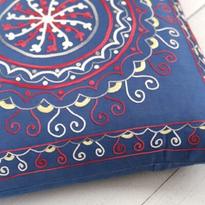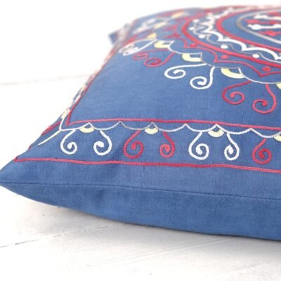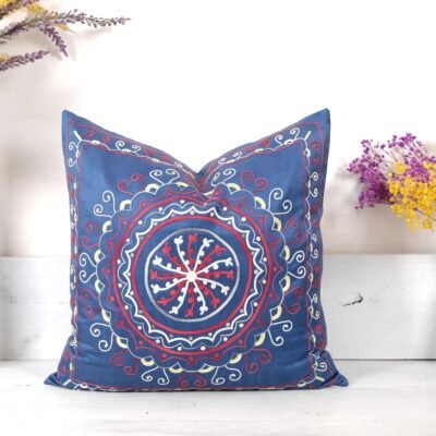 – Traditional Vibrance: The Denim Blue Suzani Embroidered Pillow is embroidered with authentic Suzani patterns, infusing timeless cultural heritage into your home decor.
