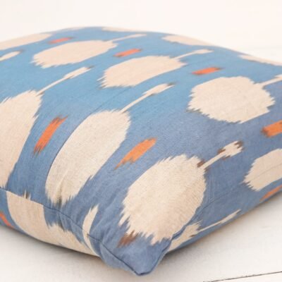 Blue Accent Adras Cushion Ikat Cushion will fascinate you with its high-quality textile and natural colours. For weaving these silk pillows only skilful masters of their work were involved. Moreover, to dye handloom ikat pillow fabric no artificial dyes were utilized, our main purpose is to select only eco-friendly items for our products. Practising for many years in the home décor sphere, now became a master in creating Oriental-style home design applications.