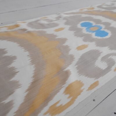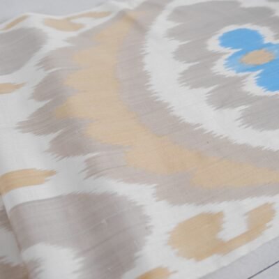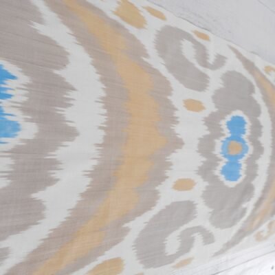 Blue Tan Silk Cotton Fabri adds a wonderful piece of the Oriental world to home design. Especially, women adore tan chevron fabric because of its exclusive patterns and utilize this fabric as a part of their apparel. Nowadays, the unique patterns of Ikat textiles give piquancy to home décor and create a cozy atmosphere. Moreover, silk and cotton are much more comfortable for the body than other materials. Adras (Ikat) fabric is able to maintain an optimal microclimate for the human body. Ikat can be used in clothing design, and interior decor, as well as for the manufacture of additional accessories – scarves, shoes, bags, and hats. Machines wash with shampoo at 30 – 40 degrees. The fabric does not fade, does not crumble, and does not lose colour brightness. Our fabric store works directly with Uzbek masters so we suggest you choose and buy a really high-quality assortment of Adras. Find even more for your next designs online.