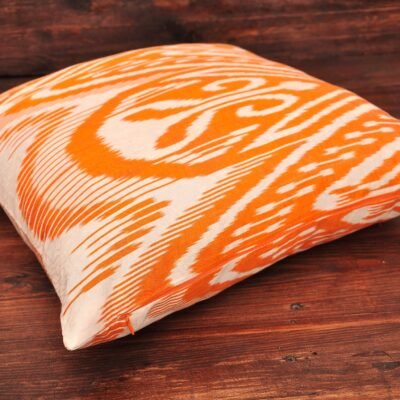 Fiery Orange Ikat Cushion will fascinate you with its high quality textile and natural colours. For weaving these silk pillows only skillful masters of their work were involved. Moreover, to dye Fiery Orange Ikat Cushion no artificial dyes were utilized, our main purpose is to select only eco-friendly items for our products. Practicing for many years in home décor sphere, now we became masters in creating Oriental style home design applications.