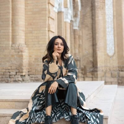 This gorgeous handmade Uzbek Ikat Kimono is the perfect combination of traditional and modern. This adras fabric is created by using the most complex ancient weaving technology with the help of natural dyes from plant extracts and seeds. For this reason, Adras ikat fabric keeps it cool in the summer and gives off heat in the winter. Therefore, this handmade Uzbek ikat kimono allows you to combine it with almost any style you aspire to. Especially, flaring out at the hem for a feminine silhouette, this maxi dress comes in a bold ikat print that gives off plenty of vibrant energy.