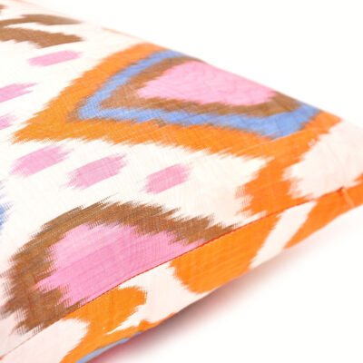 For an earthy addition to your existing décor, you simply cannot go wrong with this Handwoven Ikat Pillow Case. Handmade in artistic detail, it features an imaginative pattern in neutral shades accented with pink and gold and blue on the light pure white background. The effect is the epitome of luxury. Easily change the whole vibrancy of your room with our unique ikat pillowcases. Mix n match according to your design needs. Slip in a pillow insert, fluff and place anywhere in your home that could use a little personality!