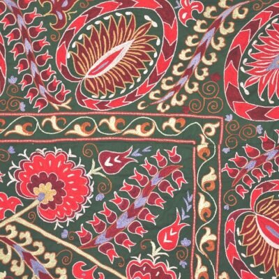 The term Suzani means “needlework”–specifically, the exquisite cotton thread embroidery panels made by Uzbek women. Traditionally, this embroidery work began at the birth of a daughter and continued, with the help of family and friends, until the bride’s dowry was complete. As the Soviet era ended and Westerners discovered Central Asian folk arts, the price of antique suzanis skyrocketed. Now maharani arts brings you recent and contemporary suzanis, affordably priced. Our suzanis are genuine folk art, stitched by hand in the traditional manner. Once used as coverlets for the bridal bed, these gorgeous textiles can bring color and texture to any environ. Suzani makes delightful wall hangings, bedspreads, furniture throws, pillows, or even tablecloths.