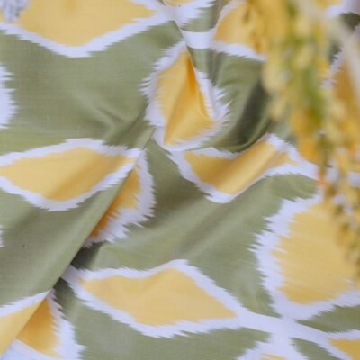 Ikat fabrics are a timeless expression of craftsmanship. The pattern brings unparalleled elegance to your home decor. Handwoven with precision and care, these fabrics embody the artistry that transforms mere textiles into a statement of sophistication. What is more, crafted with dedication, each Ikat fabric tells a unique story. The meticulous handweaving process ensures that no two pieces are alike. It makes them a distinctive addition to your home. Ikat fabrics effortlessly blend tradition with contemporary aesthetics. From vibrant patterns to subtle hues, Ikat Fabric Green Yellow is unique.