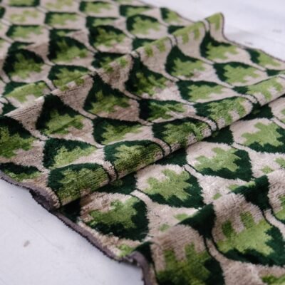 Green Leaves Silk Velvet Ikat Fabric — 100% Handwoven Silk