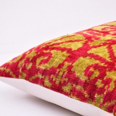 Designer velvet fabric used for the luxury soft designer throw pillow cover is the most antediluvian traditional woven. Velvet is a choice not only for clothing but also for furnishings. Velvet upholstery, velvet decorative throw pillows are the greatest authentic decor for your cozy home. Silk velvet ikat fabric is also famous with the name baghmal in Tadjik and Uzbek and as maghmal in Persian. First, a manufacturer in the case of the silk velvet ikat fabric dyes warps many times the length of the finished fabric formed the raised velvet pile. Then he arranges the ikat dyed warp threads on the loom between plain orange or pink dyed foundation warps. Weaves the cloth in plain velvet technique. Upon completion, the raised pile is not clipped. A razor is through the wire groove leaving a perfectly even, clearly ikatted, pattern on the pile.