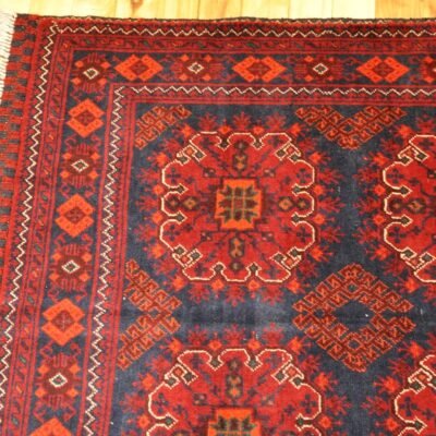 Oriental Afghan handwoven wool rug madder red. Medallion motif nomadic fine rug