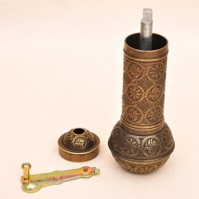 Our Oriental Brass Manual Spice Grinder is handmade with durable heavy brass and a tool steel grinding mechanism built to last. Grinders are used to grind both coffee and spices, this manual grinder is dual-purpose and one of a kind as only a few masters in the world produce these grinders by hand. Brass herb mill is a unique piece of European tradition that is functionally preferable in the world!