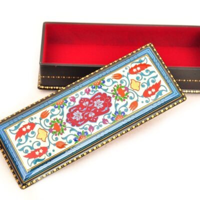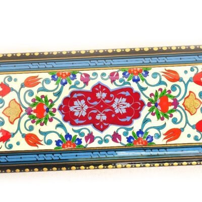 Uzbek masters use several species of trees for their works. Among them are the Walnut tree, Plane, Ember tree, and Mulberry. Those trees have hard fine textures feasible for fine intricate carving. Wood boxes can be found coated in lacquer, even inlaid with precious stones and other types of wood. It is lacquered until it gets its hands on the hardness and sturdiness of wood. Moreover, lacquerware adds an elegant look to the flamboyant designs on the surface of the box. Boxes can also be made of silver, jade, ivory, or copper. Nevertheless, wooden boxes are fashionable.