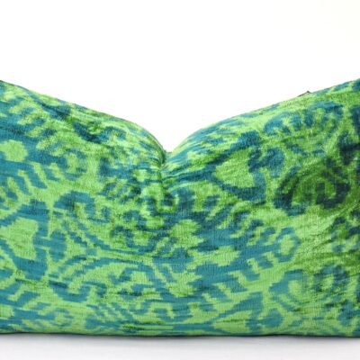 Green Home Decor Velvet Ikat Cushion / Overdyed Green Sofa Pillowcase
