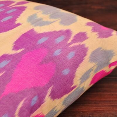 Are you looking to infuse your living space with a burst of colour and charm? Look no further than our Pink Cherry Ikat Pillow! Crafted with exquisite attention to detail, this pillow is a perfect addition to elevate the style and comfort of your home. Moreover, to dye Pink Cherry Ikat Pillow no artificial dyes were utilized, our main purpose is to select only eco-friendly items for our products. Practising for many years in the home décor sphere, now became a master in creating Oriental-style home design applications.