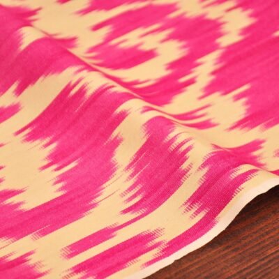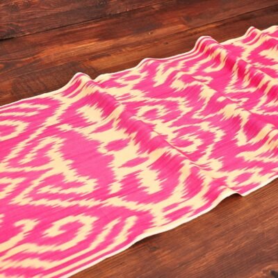 Pink Handmade Cotton Fabric is an elegant piece of oriental craftsmanship. Central Asia were always famous for the production of exquisite fabrics. Bukhara, Margilan, were and continue to be centers of Uzbek weaving. Today, these places are famous for the beauty of hand-made silk and cotton ikat fabrics. The centuries-old traditions of woven silk and cotton fabrics have been an important part of national fashion, culture and interior design. This delicate, fashionable ikat fabric of the highest quality is pure natural cotton. That’s why the stunningness and strength of the unstressed fabric is always beyond compare anywhere in the world. Very definitely, since unique Ikat design is the work of an individual.