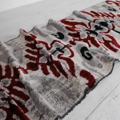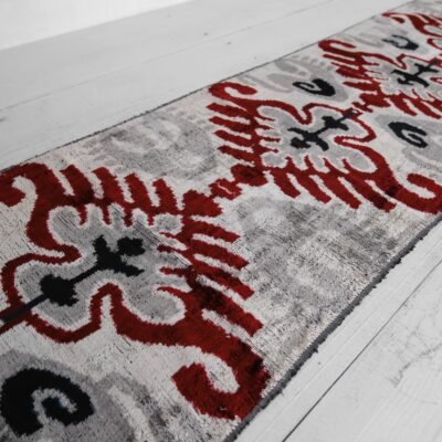 Pomegranate Velvet Silk ikat fabric / Handwoven Silk Ikat Fabric