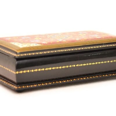This magnificent wooden box painted with fabulous shades of multicolor lacquer. Hence, it features unique, easy on the eyes ornamental paintings. Get now this elegant stylish jewelry box. You could make one and only wedding gift, birthday gift, Valentine’s or Christmas gift for your beloved ladies. Make them keep enduring memories in this outstanding box.