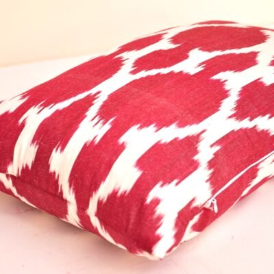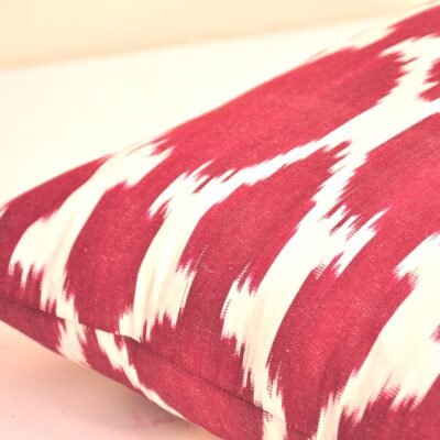 Indeed, this pillow is a handicraft texture of genuine IKAT. A distinctive feature of ikat textiles is the use of naturally intense colours. While this can be specially attributed to the closeness of particular dye sources and the love of striking effects, it also has a religious connotation, with the sense of combined imagination of heaven held in beauty. On the other hand, colour combination is the fruit of the influence of the aesthetics of foreign cultures. Dyeing, like ikat weaving and embroidery, is an exclusive craft in the Asian population.
