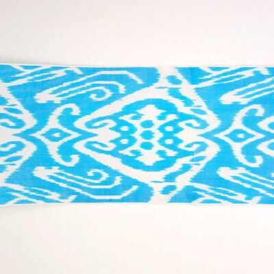 Ikat is one of the most interesting parts of Central Asian Applied Arts. It is also most prestigious and beautiful fabric. Ikat is the ancient Uzbek art of hand-dyeing, then hand-weaving, thread into bright and complex designs. Dyes distilled from natural sources such as walnuts. Indigo are used to hand-dye threads in vivid colors that are then hand-woven to create the ancient motifs and striking designs. Patterns, often, are hallmarks of ancient Uzbek craft. The resulting tightly-woven Turqoise Ikat Fabric Sale Meters is both durable and remarkably colorfast.