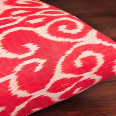 Decorative Ikat Pillow / Scroll Reddish Silk and Cotton Cushion