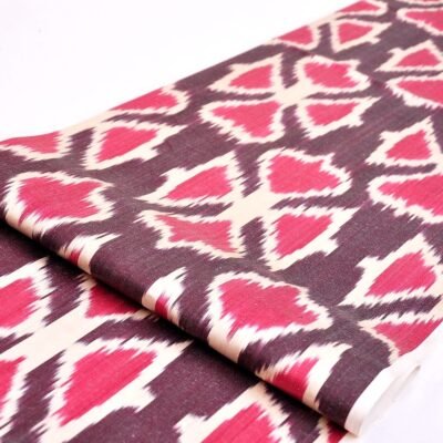 This ikat fabric is an elegant piece of oriental craftsmanship. Classic Silk Ikat Fashion Textile is a heavy silk. Most of all it is wonderfully glossy and mild to the tough, that glosses softly in the light. Hence stylish luxurious appearance with its bold tribal pattern. Uzbeks call this fabulous ikat fabric textile ‘khan atlas’ which literally means “royal silk satin”. In addition, this delicate fashionable Silk Ikat Fashion Fabric yard is pure natural silk and cotton. Traditional ikat weaving utilizes no chemical dyes or power looms. That is the reason why the impressiveness and durability of the unstressed fabric is always beyond compare anywhere in the world. Probably, since unique Ikat design is the work of an individual. And he thinks passionately and feelingly about his every choice of colour as well as form in order to create a sympathetic composition. That makes IKAT special.
