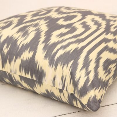 Our handwoven ikat pillow cover is a perfect piece of addition for your decor and will add a statement to your space and update instantly your chic style as a decorative pillow. Smoke Gray Interior Accent Pillow will fascinate you with its high-quality textile and natural colours. For weaving these silk pillows only skilful masters of their work were involved. Moreover, to dye handloom ikat pillow fabric no artificial dyes were utilized, our main purpose is to select only eco-friendly items for our products. Practising for many years in the home décor sphere, now became a master in creating Oriental-style home design applications.