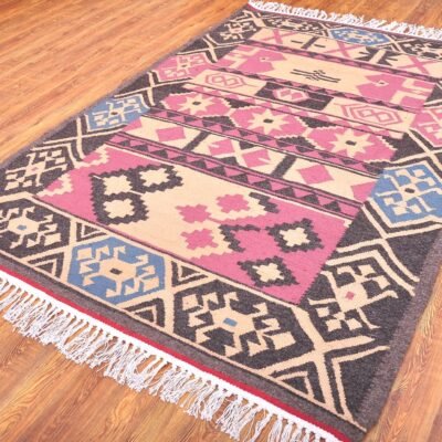 Kilim rug – This construction technique produces a flat-weave rug that is thick, strong and exceptionally durable. They are distinguishable by the fact that the pattern is visible only from one side- with the reverse often having threads of yarn 2 to 4 cm long left hanging on the back. The Soumak kilims are heavy and stiff and make a great floor rug. They are found in bag faces, animal covers and have been used as curtains and bed covers. Designs are almost always bold and colorful and employ many of the design patterns of the knotted Caucasian rugs.