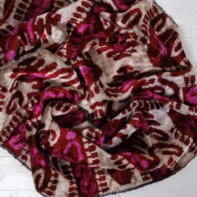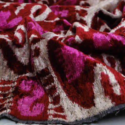 Magenta Tumor Silk Velvet Ikat Fabric — 100% Handwoven Silk