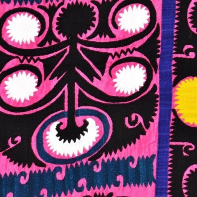According to custom, a suzani was started when a girl was born, in preparation for her wedding. Favourite motifs include the tree of life, floral patterns with and carnations, and evil eye amulets. This handmade embroidery produce of suzani is for exporting around the world. Their compositions symbolize the blossom of the family and life on the earth. Moreover, with so many women participating in its creation, the suzani became a form of artistic expression. Equally, a way to communicate with the world outside. Very broadly, they are hand-embroidered textiles traditionally made by family members for a Central Asian girl’s dowry.