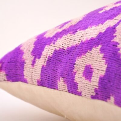 aditional woven. Velvet is a choice not only for clothing but also for furnishings. Velvet upholstery, velvet decorative throw pillows are the greatest authentic decor for your cozy home. Silk velvet ikat fabric is also famous with the name baghmal in Tadjik and Uzbek and as maghmal in Persian. First, a manufacturer in the case of the silk velvet ikat fabric dyes warps many times the length of the finished fabric formed the raised velvet pile. Then he arranges the ikat dyed warp threads on the loom between plain orange or pink dyed foundation warps. He weaves the cloth in plain velvet technique. Upon completion, the raised pile is not clipped. A razor is through the wire groove leaving a perfectly even, clearly ikatted, pattern on the pile.